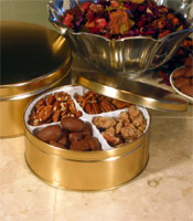 Gold gift tins with your choice of four combinations of flavored pecans.